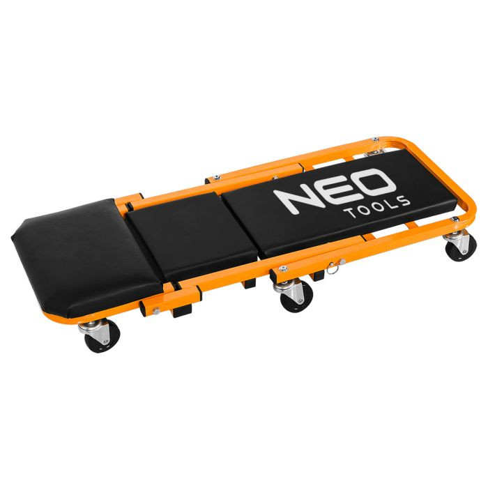 Platforma de lucru 2 în 1 de la NEO este un accesoriu de neprețuit pentru atelier, care permite efectuarea confortabilă a lucrărilor atât sub vehicule, cât și în poziție șezândă, prin transformarea lezierei într-un taburet. Dimensiunile sale sunt de 40 x 14 x 102 cm atunci când leziera este desfăcută și de 54,5 x 40 x 48 cm atunci când este folosită funcția de taburet. Capacitatea acestui obiect impresionează, de asemenea – cu o capacitate de până la 150 kg ca leziera și 120 kg ca taburet.