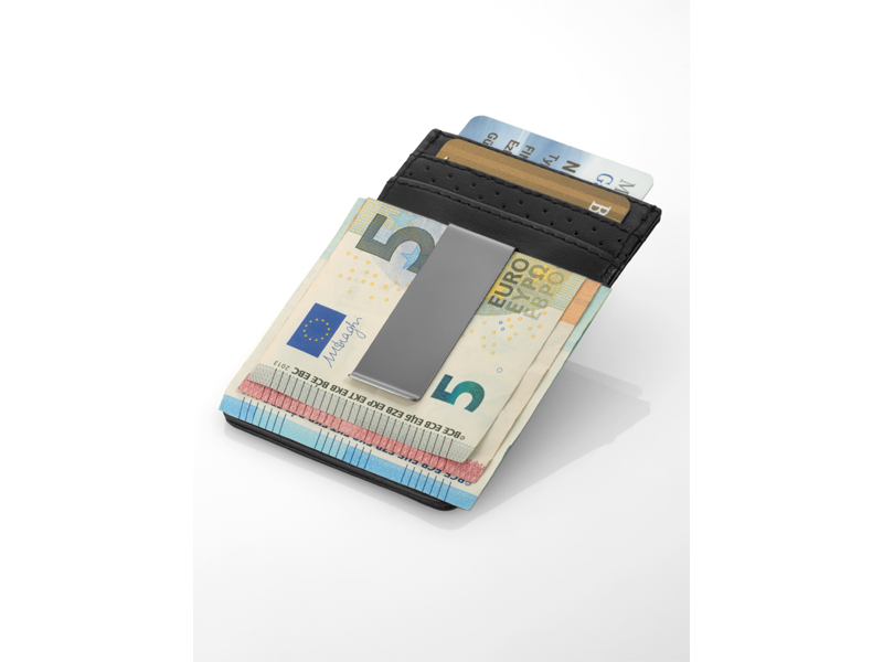 Portofel barbati clasic pentru carduri de culoare negru din piele cu otel inoxidabil