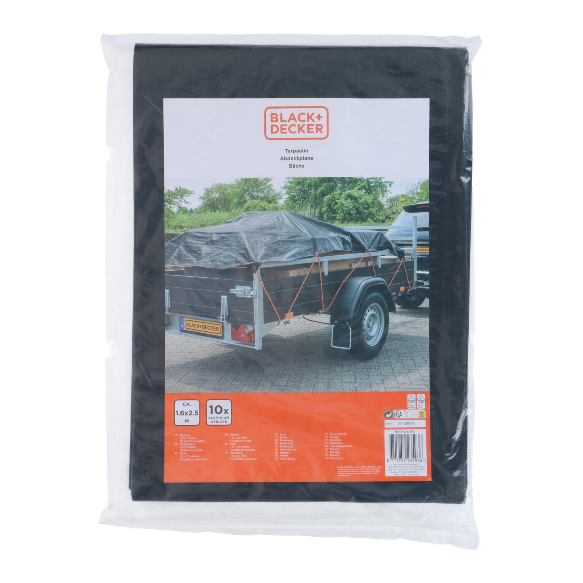 Intenționați să mutați mobila sau alte materiale printr-o remorcă? Cu această husă BLACK&DECKER pentru remorcă oferiți o protecție suplimentară bunurilor dumneavoastră împotriva condițiilor meteorologice. Cu o suprafață generoasă de 3×4 metri, această prelata oferă suficientă protecție pentru încărcătura dumneavoastră. Cele 14 orificii cu inele de aluminiu permit montarea sigura.