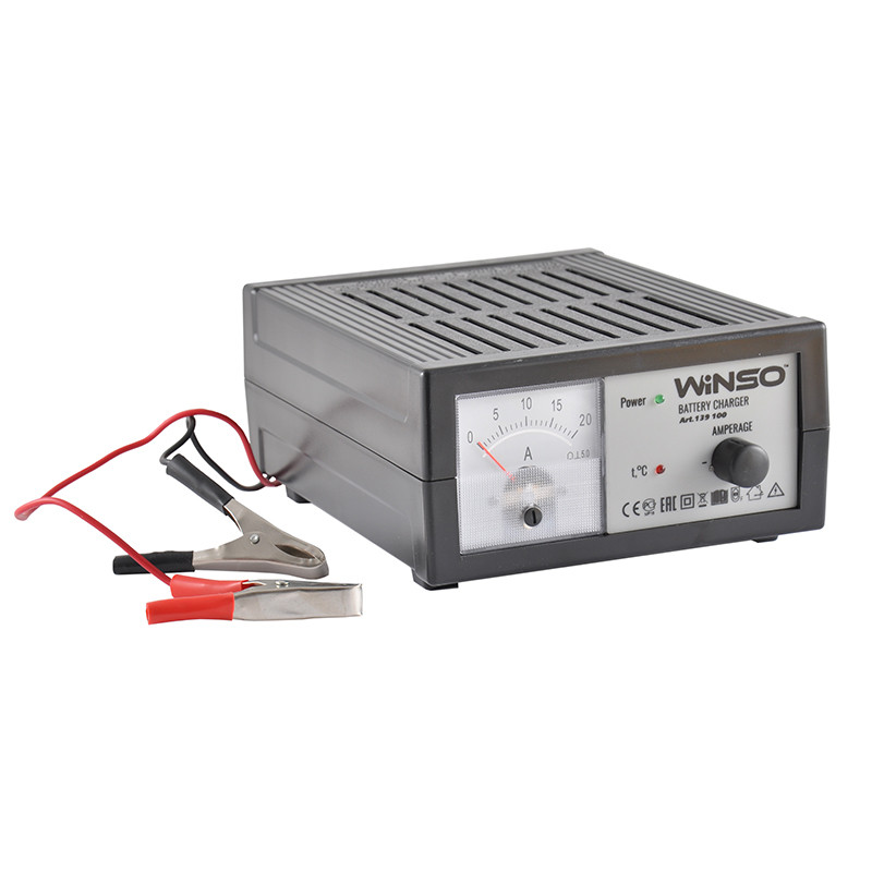 Încărcătorul Winso 139200 este conceput pentru a susține încărcarea inițială a bateriilor cu plumb cu o tensiune de 12 V. Panoul de control are un buton pentru modul de funcționare, indicatori LED și un buton de control al curentului de ieșire. Încărcătorul de baterii are, de asemenea, orificii de ventilație pentru a ajuta la răcirea dispozitivului în timpul funcționării. Mânerele cu cleme tip crocodil sunt izolate pentru conectare și deconectare în siguranță. Putere nominală: 240 W. Capacitatea bateriei: 120 Ah. Curentul de ieșire: 0,8-18 A. Dispozitivul nu are ampermetru. Nu uitați să respectați polaritatea!