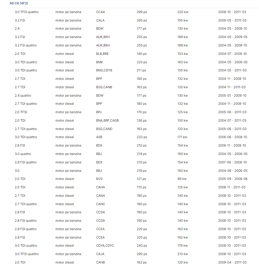| Model | Audi A6 C6 |