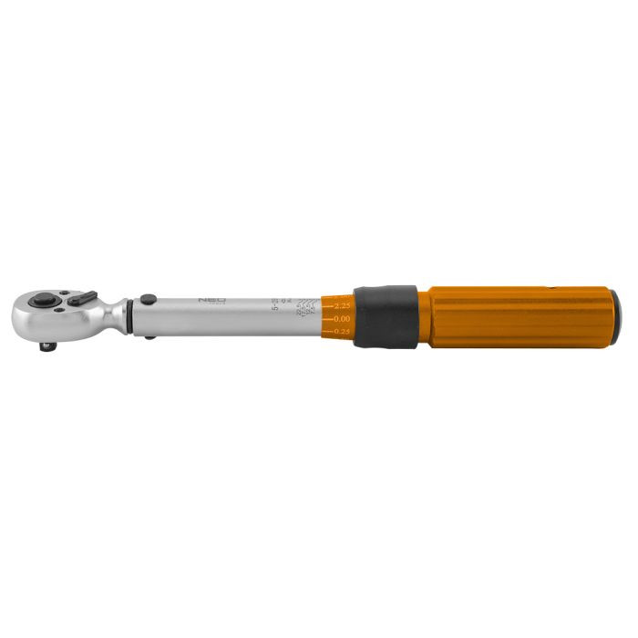 „Set de chei dinamometrice reversibile 1/4″”, 3/8″”, 1/2″” 3 buc. 08-845 de la NEO este un set de trei chei profesionale esențiale în service-ul auto. Acesta este format din instrumente cu gama: 1/4″” 5-25 Nm; 3/8″” 20-120 Nm; 1/2″” 60-330 Nm, și o precizie de +/- 3% la dreapta și +/- 6% la stânga. Cheile au un certificat de calibrare. Acestea sunt fabricate din oțel CrV de înaltă calitate. Mecanismele lor cu clichet conțin un set de 72 de dinți permanenți. Mânerul ergonomic este prevăzut, în plus, cu marcaje practice ale scalei, ceea ce afectează confortul utilizatorului. Setul este oferit într-o cutie practică din aluminiu ușor.