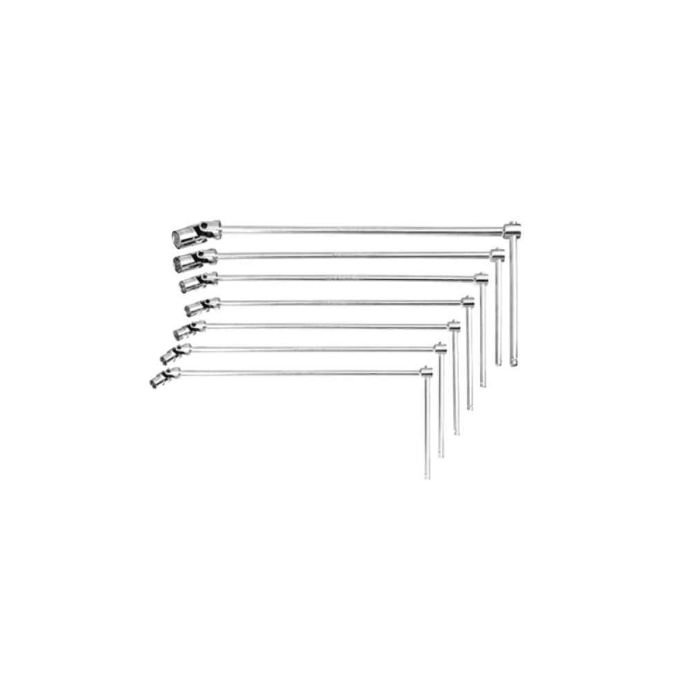 - Setul contine 7 chei cu maner in T cu cap pivotant cu urmatoarele marimi: 8mm, 10mm, 11mm, 13mm, 14mm, 17mm si19mm.