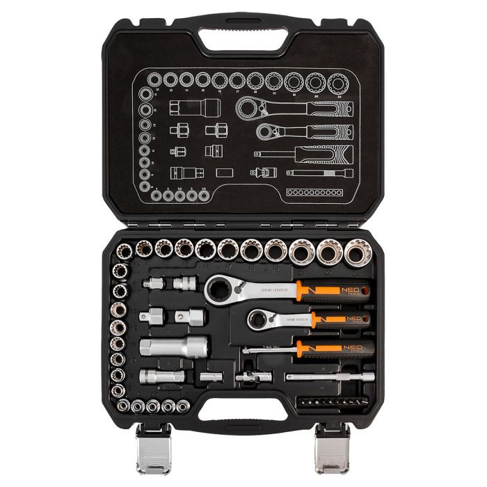 Setul de accesorii cu capete de 1/4″ + 3/8″, 46 buc. + valiză de la marca NEO TOOLS este un set complet de unelte, ideal atât pentru profesioniști, cât și pentru pasionați de bricolaj. Acesta include capete cuprinse între 1/4″ și 3/8″, oferind mai multe opțiuni de utilizare în diverse situații.