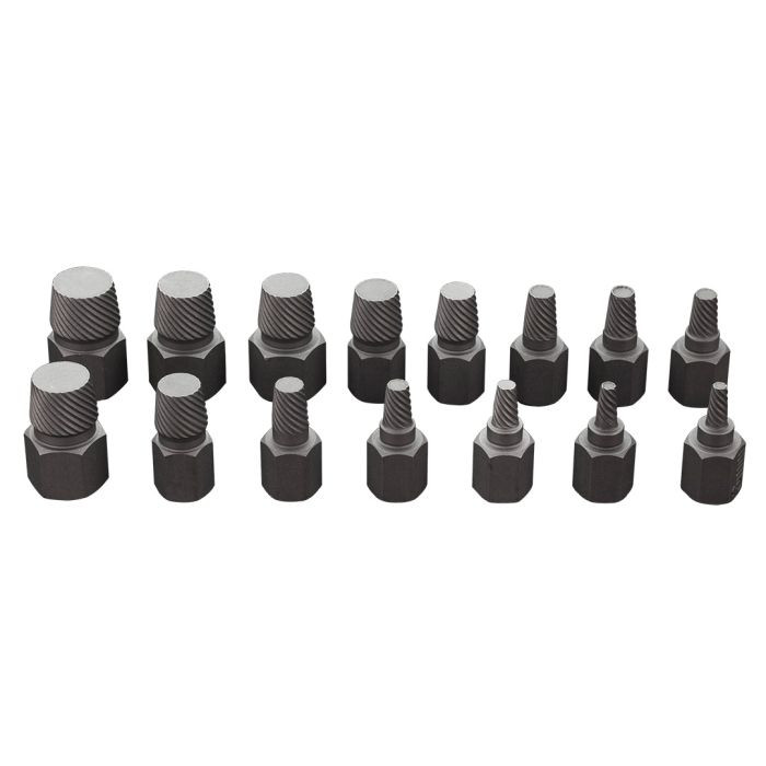 Set extractoare suruburi 1/2″ Neo 09-607. Set 15 buc:- Dimensiune 1/2″:- 3, 4, 5, 5.5, 6, 8, 10, 1/8”, 3/16”, 1/4”, 3/8” mm cu cap de 12 mm- 11, 12, 14, 1/2” mm cu cap de 16 mm- Fabricat din otel crom-molibden