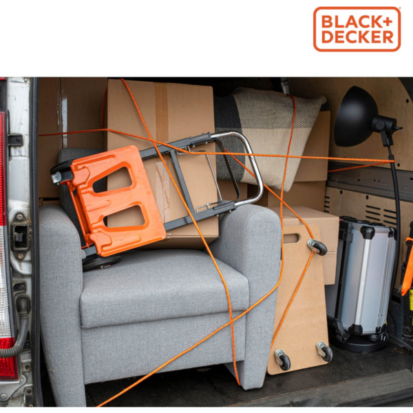Asigurați în siguranță diferite tipuri de încărcătură cu sfoara de ancorare BLACK&DECKER de 20 de metri, inclusiv rola pentru de tensionare. Datorită lungimii sale de 20 de metri, este perfectă pentru a securiza cutii, mobilier și deșeuri, printre altele. Legați în jurul unei remorci sau asigurați-vă portbagajul cu ea, astfel încât nimic să nu se poată rula accidental. Sfoara portocalie are părți reflectorizante, astfel încât să fiți clar vizibil în trafic . Când nu utilizați cureaua de ancorare, o puteți depozita cu ușurință folosind rola de ancorare.