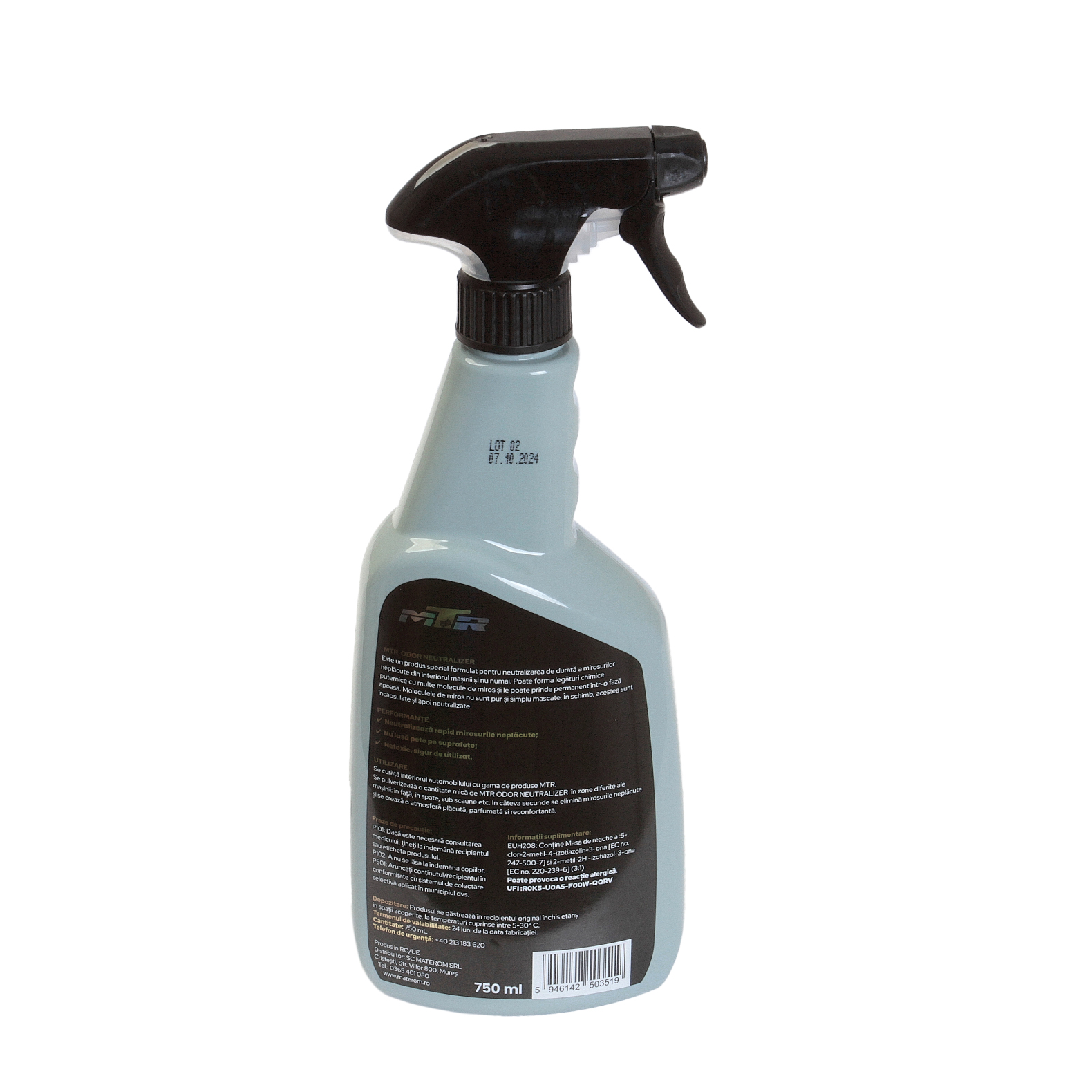MTR ODOR NEUTRALIZER este un produs special formulat pentru neutralizarea de durată a mirosurilor neplăcute din interiorul mașinii și nu numai. Poate forma legături chimice puternice cu multe molecule de miros și le poate prinde permanent într-o fază apoasă. Moleculele de miros nu sunt pur și simplu mascate. În schimb, acestea sunt încapsulate și apoi neutralizate.
