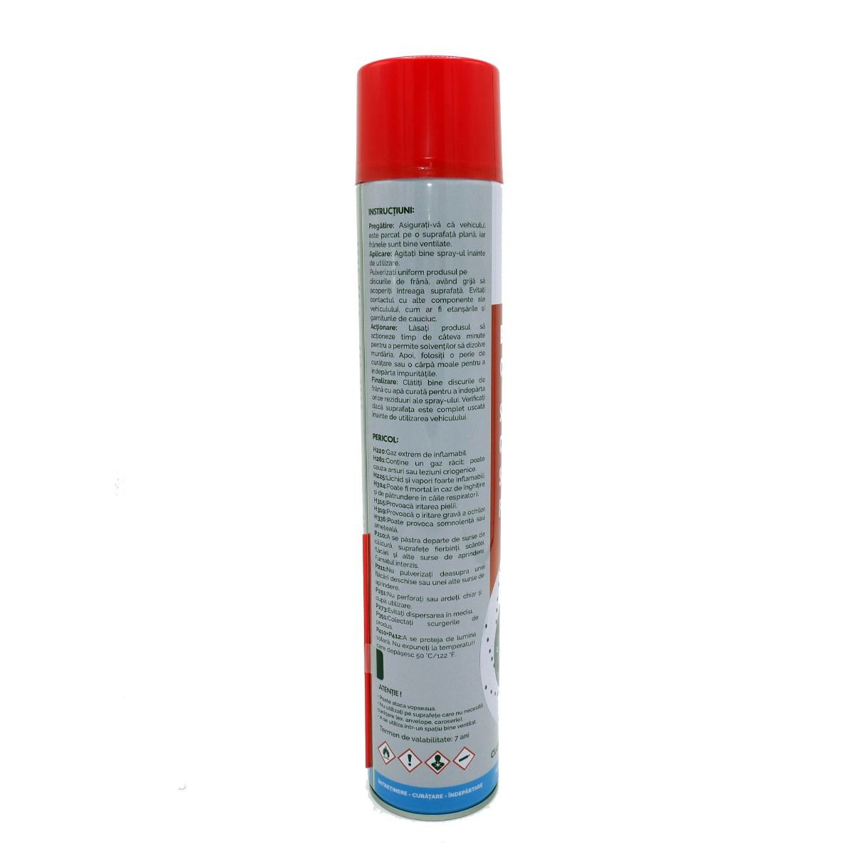 Spray-ul conține o soluție cu o formulă specială care asigură curățarea și degresarea rapidă a discurilor, saboților, plăcuțelor și arcurilor din componența sistemului de frânare.