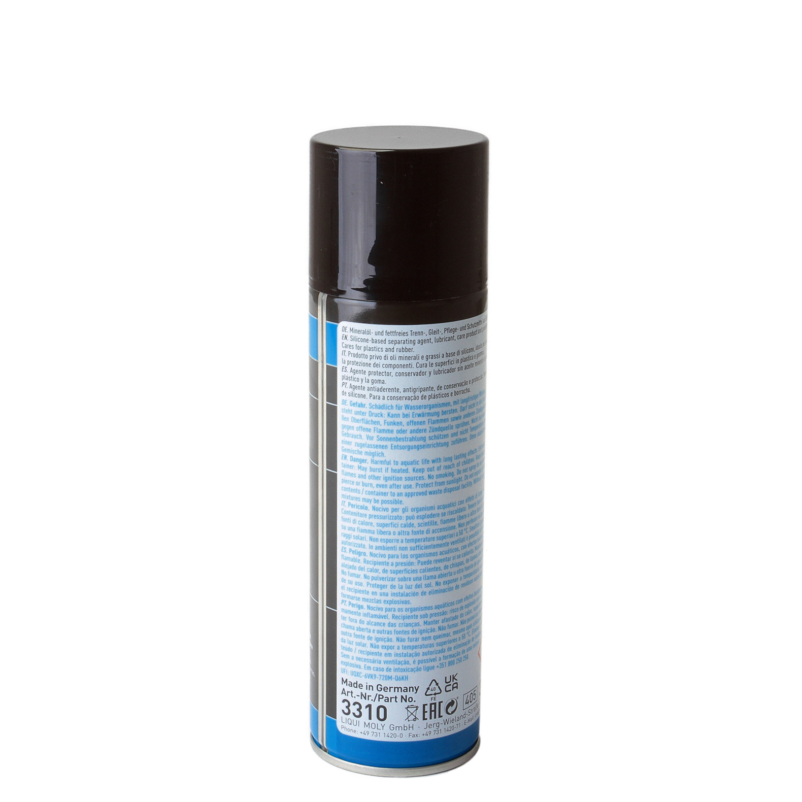 Agent de separare, de alunecare şi de protecţie cu ulei mineral, fără grăsimi, pe bază de silicon. Pentru plastic, cauciuc, metal şi lemn. Aplicare uşoară. Pulverizaţi piesele de tratat cu un strat subţire şi lăsaţi-le să se usuce. Elimină zgomotele deranjante din zonele cu plastic. Protejează, lubrifiază și izolează toate suprafețele prin intermediul unui film de protecție transparent, permanent. Miros plăcut.
