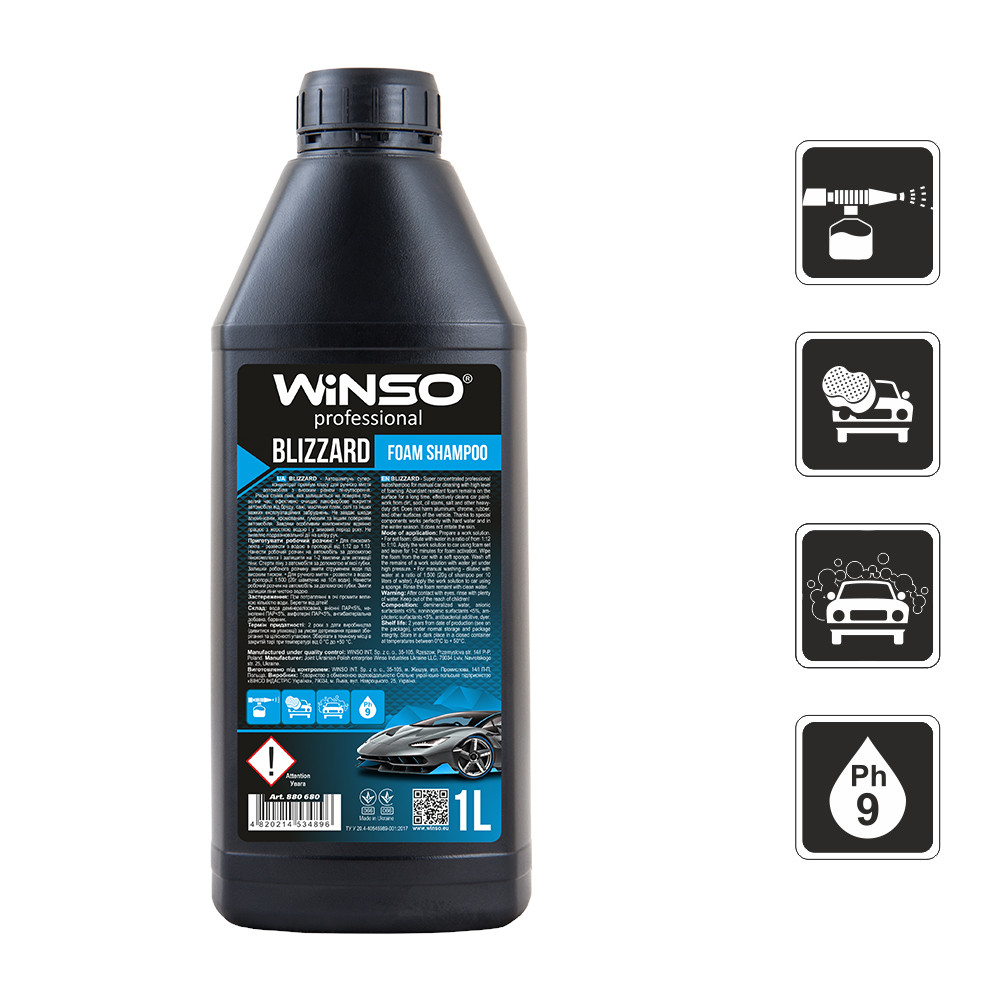 Agent alcalin de clasă premium profesional pentru spălarea fără contact a mașinilor și camioanelor cu spumă înalt. Datorită formulei unice, care include nano detergenți, îndepărtează cu ușurință murdăria puternică din praful de drum, pelicula statică, reziduurile de insecte și contaminanții grași. Ideal pentru spalatorii auto cu autoservire. Excelent pentru discurile de mașină, spălând murdăria persistentă și placa de pe plăcuțele de frână. Oferă strălucire perfectă. Nu dăunează aluminiului, cromului, cauciucului și altor suprafețe ale mașinii. Datorită componentelor speciale, funcționează perfect cu apă dură în sezonul de iarnă.