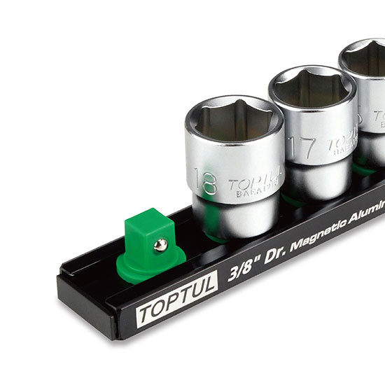 Construcție șină din aluminiu anodizat Magnet foarte puternic pentru o plasare solidă Susține atât prize standard, cât și adânci Elemente de fixare rotative la 360°