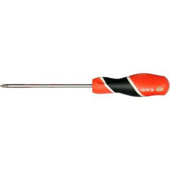 Șurubelniță tip cruce realizată din oțel cu simbolul S2, călit la aproximativ 58 HRC. Finisaj satinat.