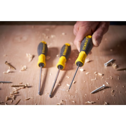 ȘURUBELNIȚA ESSENTIAL: Șurubelnița din seria Essential™, combină calitatea bună pentru utilizarea de zi cu zi și prețul scăzutMÂNER MOALE: Mânerul din două materiale oferă confort, control și aderență superioareBARĂ DE VANADIU-CROM: Pentru soliditate și rezistență la coroziune