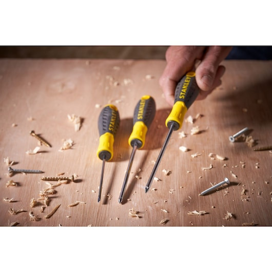 ȘURUBELNIȚA ESSENTIAL: Șurubelnița din seria Essential™, combină calitatea bună pentru utilizarea de zi cu zi și prețul scăzutMÂNER MOALE: Mânerul din două materiale oferă confort, control și aderență superioareBARĂ DE VANADIU-CROM: Pentru soliditate și rezistență la coroziune