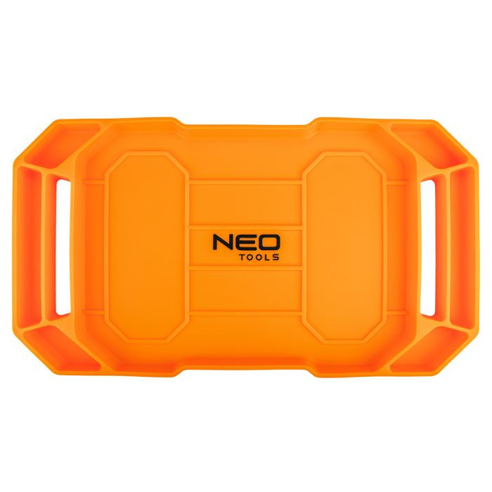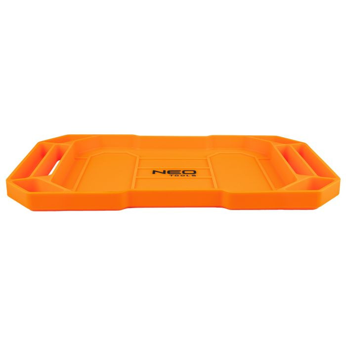 Tavă pentru scule, silicon 54 x 35 x 2.9 cm 10-482 de NEO, din silicon flexibil și antiderapant. Acesta are dimensiuni de 54 x 35 x 2.9 cm și o adâncime de 30 mm pentru a preveni căderea instrumentelor. Are 7 buzunare practice. Materialul protejează accesoriile depozitate în interior de lovituri. Recomandat pentru menținerea ordinii în atelier și depozit.