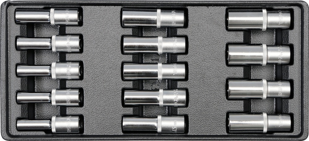 Trusă chei tubulare adânci 1/2″ pentru dulap 8-21 Mm