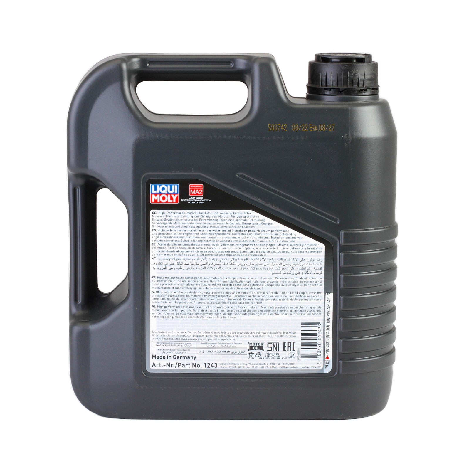 Ulei RACING 4T 10W40 – Este un ulei de motor pentru motociclete, de mare performanta, obtinut printr-o tehnologie de sinteza, destinat motoarelor in 4 timpi, racite cu aer si apa. Special conceput pentru utilizare in toate anotimpurile pentru motociclete de strada, de teren si de curse, in conditii normale sau extreme. Se preteaza in mod exceptional pentru utilizare la motocicletele cu sau fara ambreiaj umed.