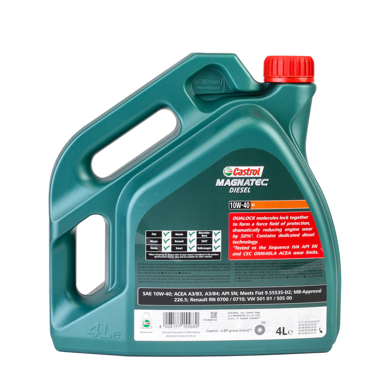 Conceput pentru a fi folosit in motoarele moderne diesel (includem aici si motoarele cu turbo-suflanta si inter-racire), Castrol Magnatec Diesel 10W40 are la baza molecule inteligente pentru protectie activa si continua din momentul pornirii motorului. Moleculele inteligente adera si se lipesc de suprafetele metalice si protejeaza de la început, dar si pe intreaga durata a calatoriei.