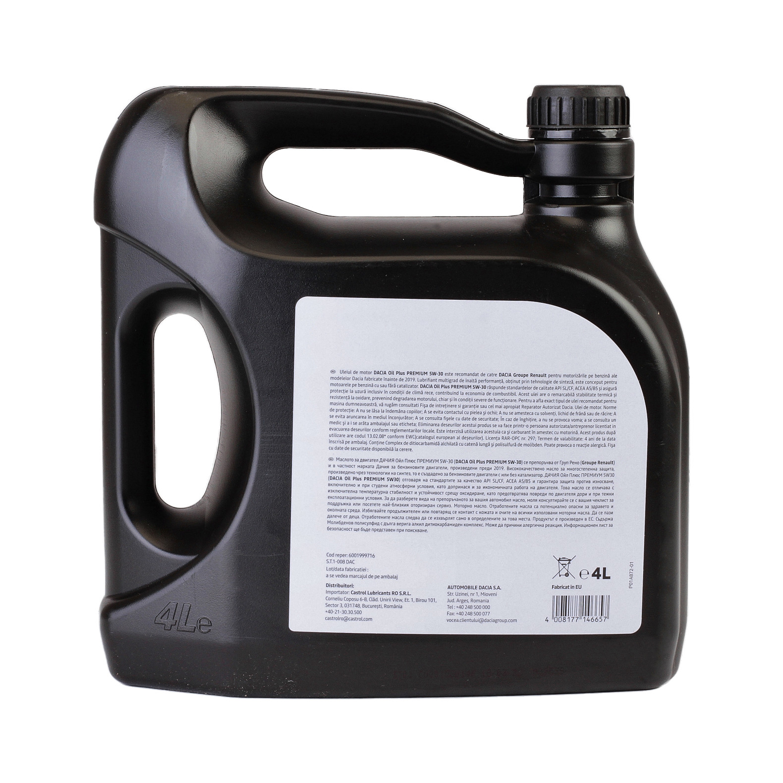 Uleiul Dacia Oil Plus Premium 5W30 fabricat de o binecunoscuta companie petroliera multinationala raspunde ultimelor standarde de calitate API SL/CF si ACEA A5/B5, asigura protectie la uzura in conditii de clima rece, oferind economie de combustibil.