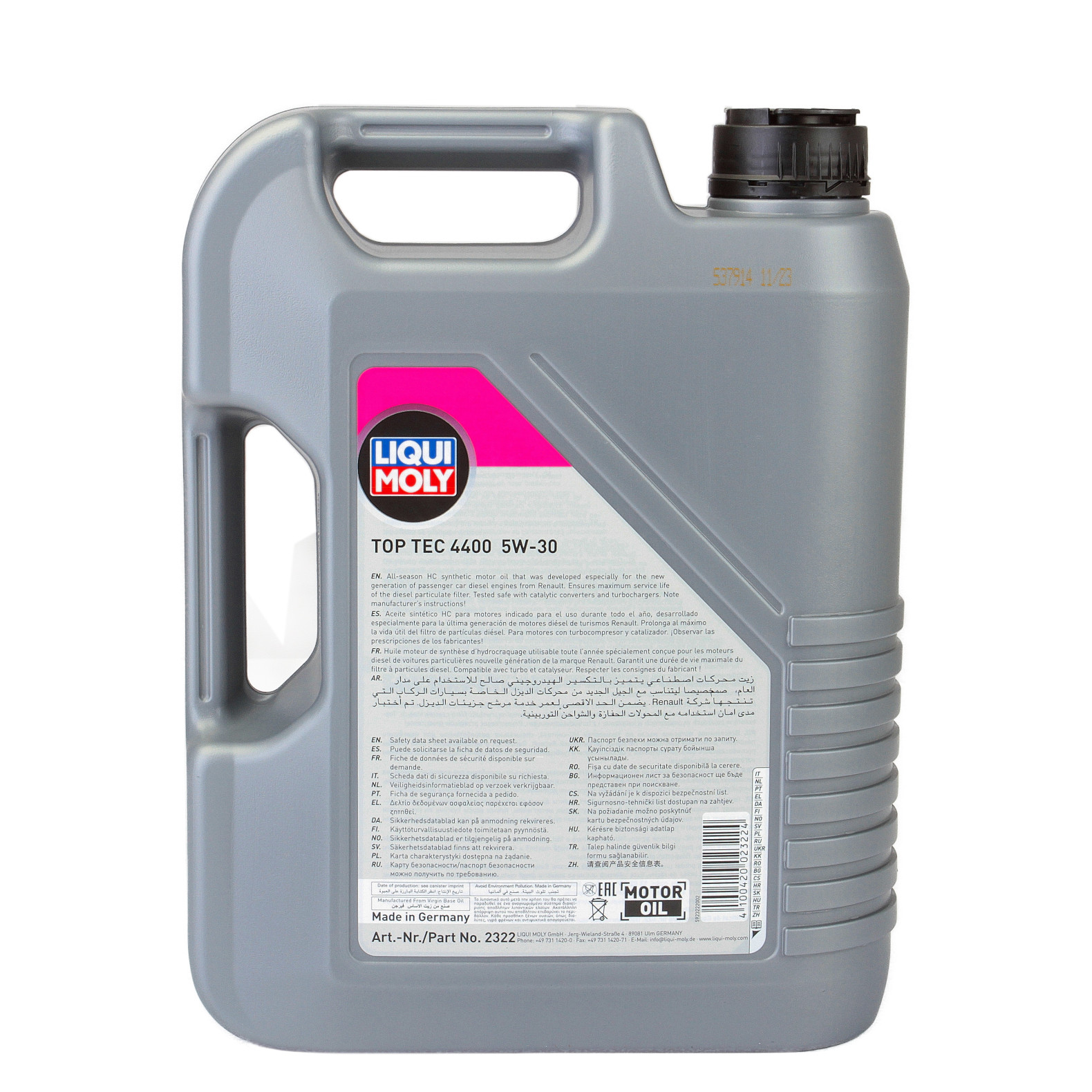 Ulei modern de motor, de mare performanţă, cu conţinut redus de cenusă, utilizabil în orice anotimp, care asigură un mers lin al motorului. Combinaţia dintre uleiurile de bază neconvenţionale obţinute prin tehnologia de sinteză şi cei mai moderni aditivi garantează un ulei de motor care asigură o protecţie deosebită la uzură, reducând consumul de ulei şi carburant şi asigurând o lubrifiere rapidă a motorului. Autovehicule Renault necesita un ulei de motor cu aceste specificaţii în cazul utilizării unui filtru de particule DPF, pentru a mări la maximum durata de viaţă a acestuia. Top Tec 4400 5W-30 este potrivit pentru utilizare în autoturisme