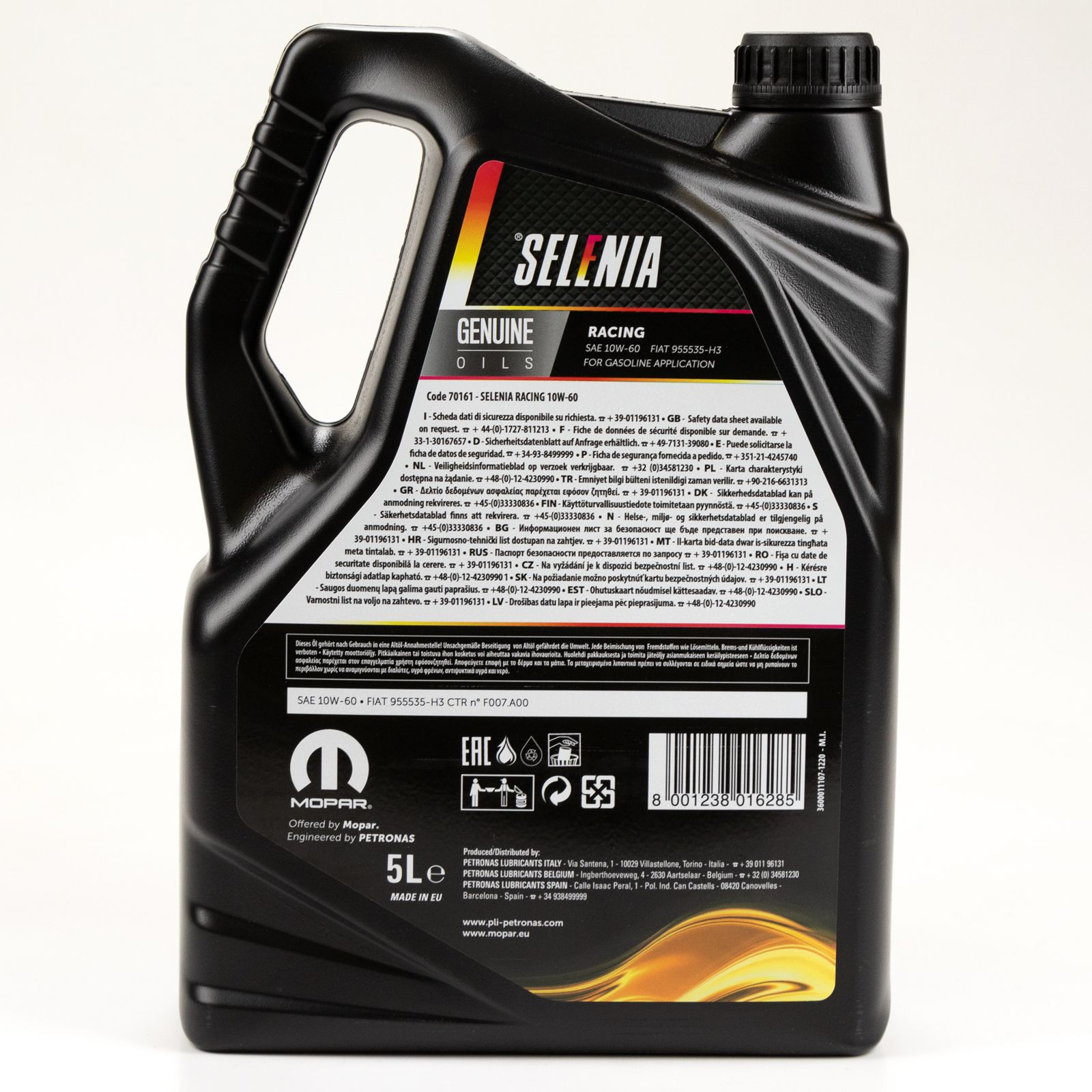 Cu rezerve mari de rezervă, Selenia Racing depășește cerințele de calitate ale majorității producătorilor și poate fi utilizată în motoarele cu aspirație naturală, turbo sau cu mai multe supape de toate mărcile și nivelurile de performanță.